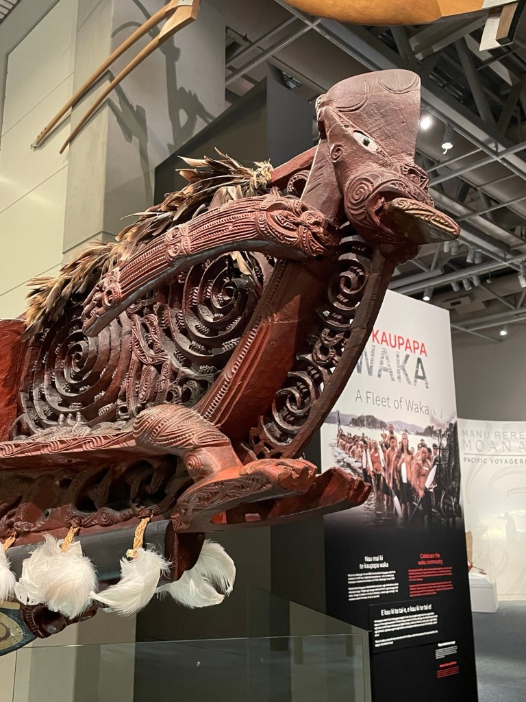 After lunch we walked along the harbor to the Te Papa Museum of New Zealand. For a smaller city the size of Wellington the Te Papa (“our place” in Māori) is a phenomenal presentation of the Māori culture and the natural history of New Zealand.