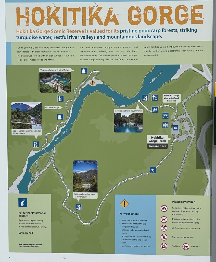 After spending the night in the former Hokitika fire station that has been very nicely renovated as a five-room hotel, we heard that the Hokitika Gorge is a don’t miss it side trip.