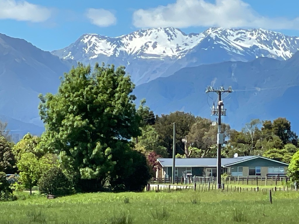 Then the central mountain range that we’ll be heading up into later today rises up in the distance. So awesome to see snow in late spring here.