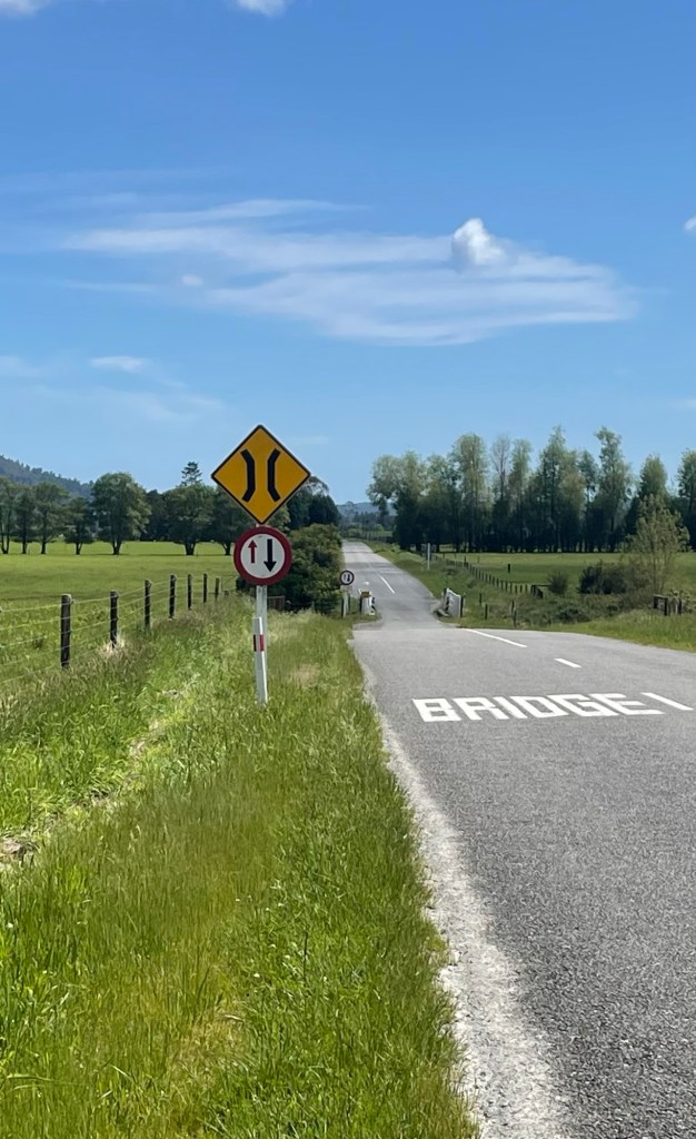 On the drive out and back there are quite a few one-lane bridges to cross (and more to come). The sign lets you know who has dibs on crossing.