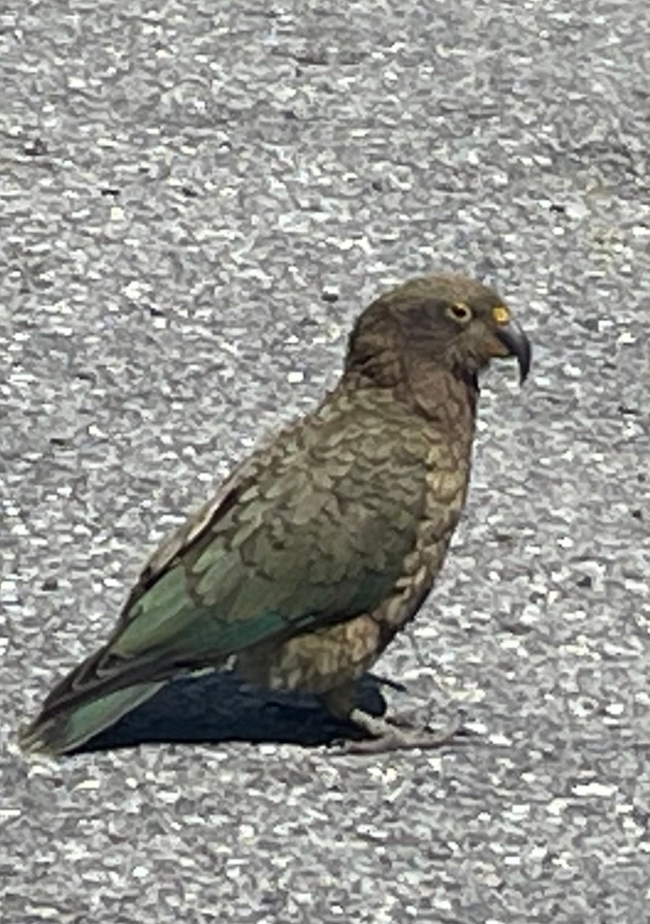 Goodbye to the Weka and hello to the Kea, an alpine parrot that is described to be at the peak of the parrot intelligence. They are incredibly curious and want to check out and peck everything around them, including sneakers, legs and the rubber weatherstripping on cars, bike tires and more.