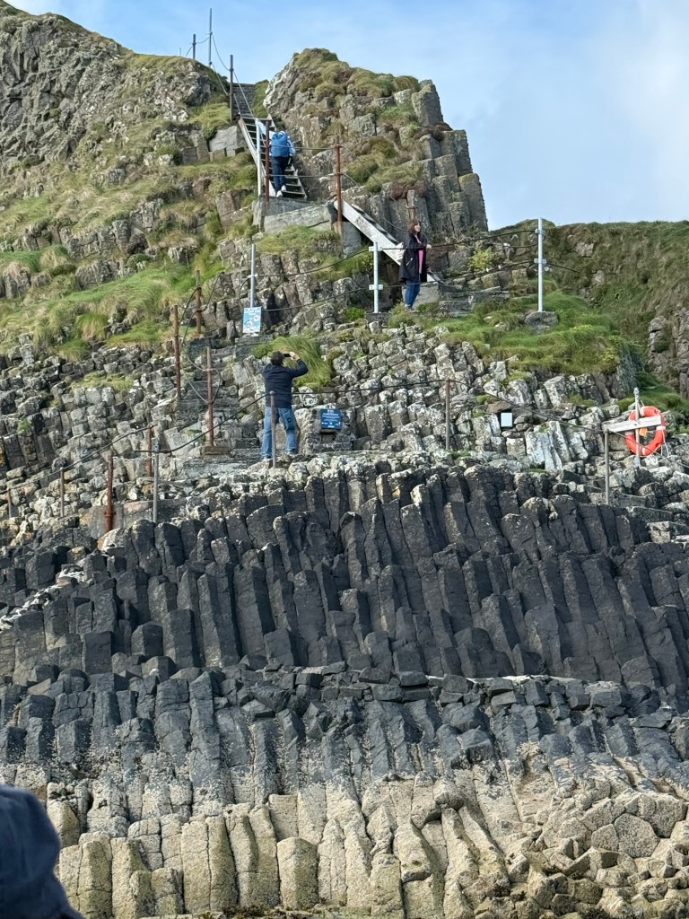 The vertical pipes stack together like a series of rods or staffs (Staffa) but they also turn and twist and break off or erode into stepping stones.
