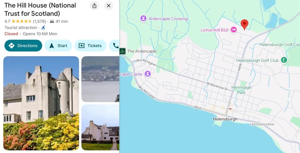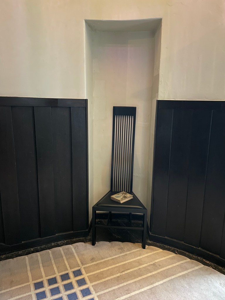 And then of course we have to geek out on Charles Rennie Mackintosh… The house that we toured is the home he designed in collaboration with his wife Margaret Macdonald for the Glasgow publisher Walter Blackie. It is known as The Hill House. Completed in 1904 in Helensburgh, northwest of Glasgow it was a complete break from the traditional Tudor house design fashion at that time.