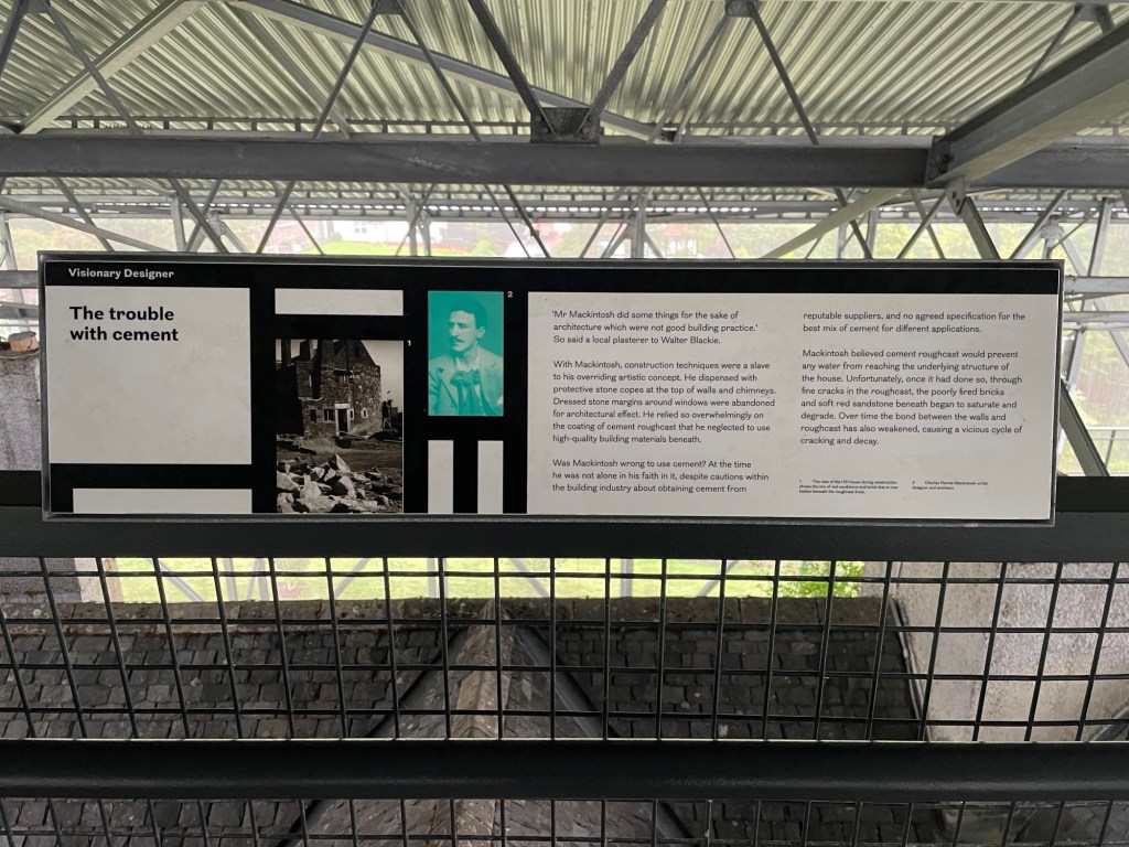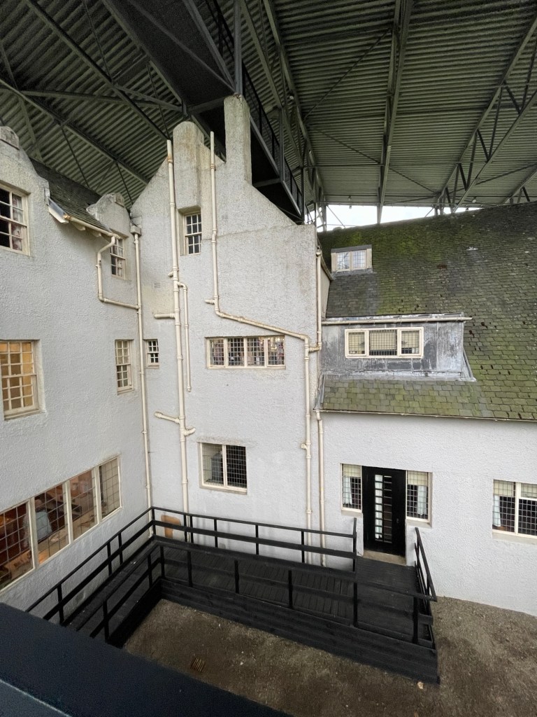 The house is a beautifully detailed art nouveau experience and a quite comfortable home but also an experiment with exterior finishes that unfortunately has not stood the test of time in Scottish weather.